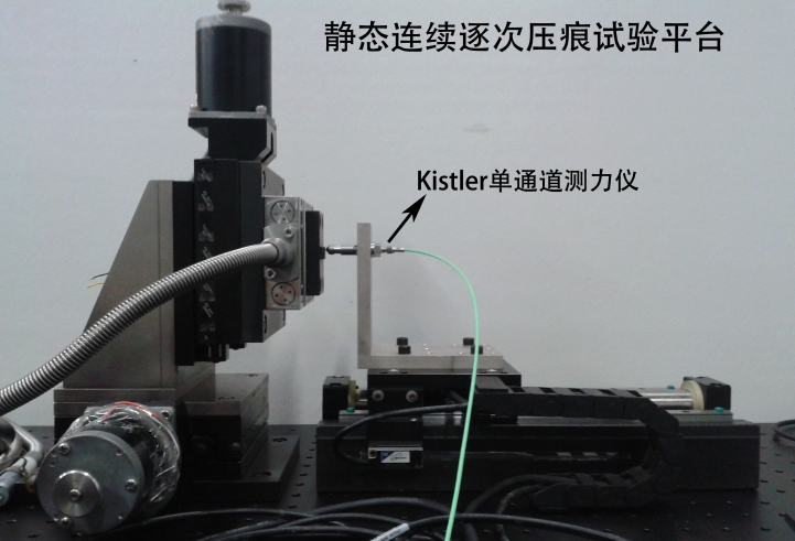 靜態(tài)連續(xù)逐次壓痕試驗平臺,該試驗平臺包括:直線電機、Kistler 9203單通道測力儀等設(shè)備。其驅(qū)動通過Renishaw光柵尺閉環(huán)系統(tǒng)控制,重復(fù)定位精度可達0.5μm,其Kistler單通道測力系統(tǒng)的采樣頻率可達27kHz。該試驗平臺可針對材料進行逐次連續(xù)的壓痕試驗,從而研究其靜態(tài)力學(xué)性能。