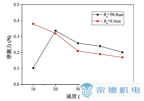 主轴最高转速为12000 rpm,配合直径为200mm的摩擦盘,最高摩擦可达120m/s。不同粗糙度表面的高导无氧铜与单晶金刚石的摩擦系数随速度变化如图5所示。