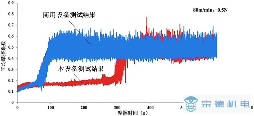 商用的球-盘摩擦试验用于摩擦盘端面跳动较为严重,在摩擦进入稳态前需要较长时间的摩擦过程。而一般的涂层材料较薄,在未进入稳态前涂层已经发生了严重磨损,导致测得的结果是涂层基体材料与另一个对磨体的摩擦系数而非涂层本身与另一个对磨体的摩擦系数,因此无法实现超薄涂层的摩擦测试。本超高速摩擦试验机由于降低了摩擦盘的端面跳动,可以大幅度的降低磨合过程,减小涂层的磨损,因此可以实现超薄涂层的摩擦试验。